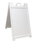 This heavy-duty plastic A-frame is the perfect solution for sidewalk advertising. The frame can be filled with sand or water for greater stability. The double sided hardware includes regressed sign area that helps to protect sign faces. Up to two graphic prints with matte lamination are available at no additional cost.